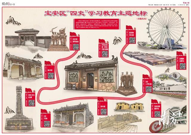 截至目前,宝安区以“百年风华·红色宝安湾”“潮起西岸·奋进宝安湾”“淳厚乡土·温情宝安湾”“党心疑聚·为民宝安湾”为主线,共推出30个“四史”教育主题地标,并结合VR、视频等全媒体形式,将学习教育融入寻访红色风景之中,将宝安的“小历史”融入大党史,最大限度发挥本士红色资源的教育功能,不断擦亮宝安“红色名片”。