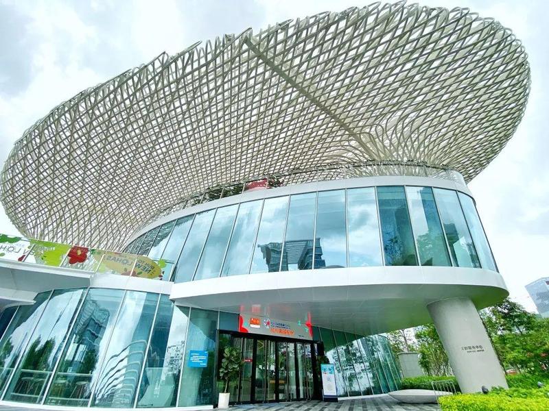 21号寓意1921年,突出“红色”和“时空”概念,宝安将党建主题轿厢命名为“红色时空舱”,与不远处的欢乐港湾党群服务中心遥相呼应,共同构成欢乐港湾党建宣传服务矩阵。