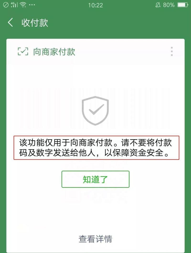 另外,不要轻易将支付二维码截图给他人,更不要将18位数的付款码直接告诉别人,这些很有可能是陷阱。