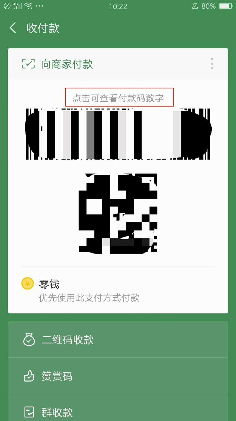 用手机微信或者支付宝付款时,点击进入付款页面后,会显示条形码、二维码和付款码数字,这三个功能是一样的,知道其中任意一个都能实现扣款。