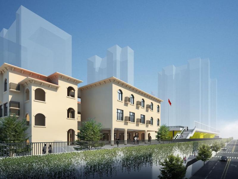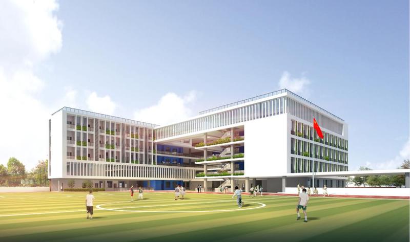 龙岗区外国语学校改扩建项目新增1栋6层教学楼和12层综合功能楼,新增建筑面积32600㎡,地上建筑面积25868.00㎡,地下建筑面积6732.00㎡,由48个班规模增加至60个班规模(小学36个教学班,中学24个教学班)。改扩建项目的设计方案围绕着“自然学堂”的理念,设计重构校园空间,化整为零。新增室内游泳池、多功能报告厅、创客室、录播室、未来教室等,是龙岗高品质校园的试点工程。