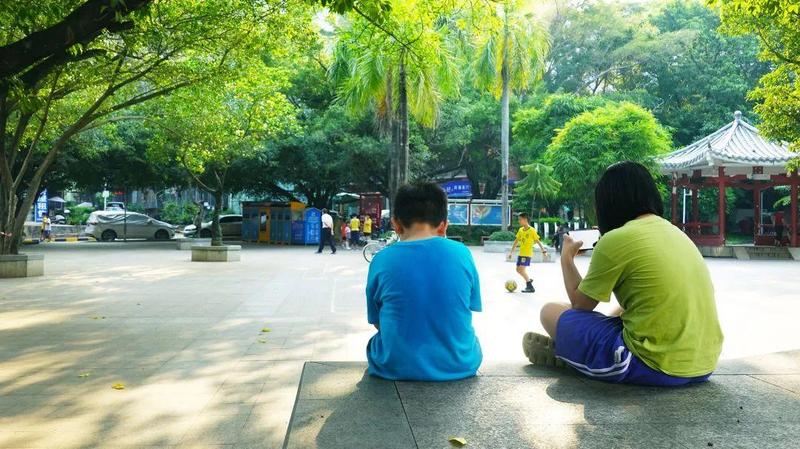 逛一圈回来,公园里围坐的老人更多了,他们曝背乘凉,蒲扇轻摇,打牌下棋喝茶说笑,如果不是粤B车牌来来去去,你很难相信这是发生在深圳的场景。