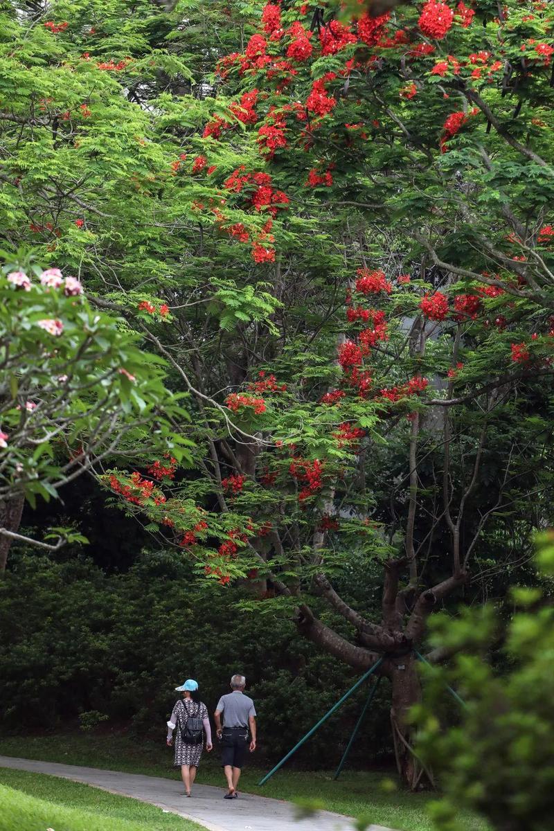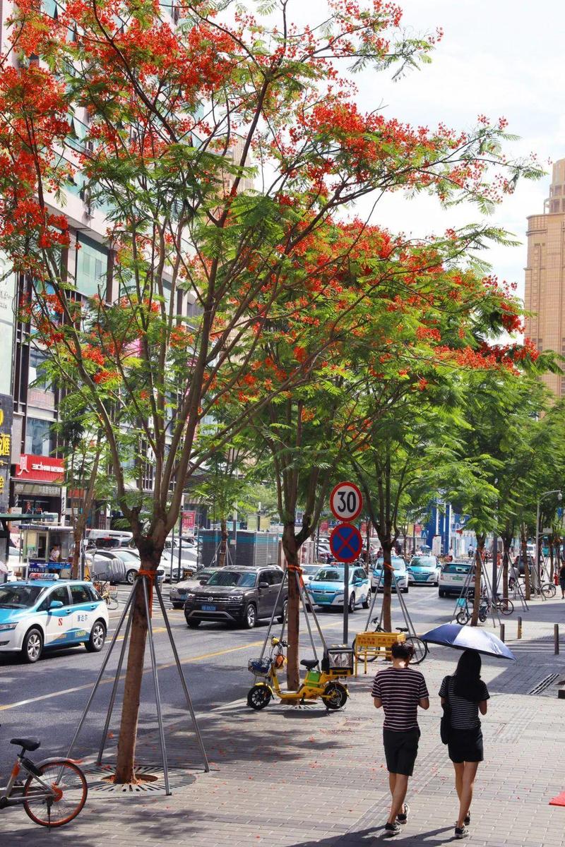 凤凰路上凤凰树,每逢盛夏花开,入目红火
