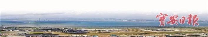 远眺宝安大空港片区,宝安机场、沿江高速以及建设中的机场东枢纽和深中通道,展现出宝安的海、陆、空、铁四维交通路网。