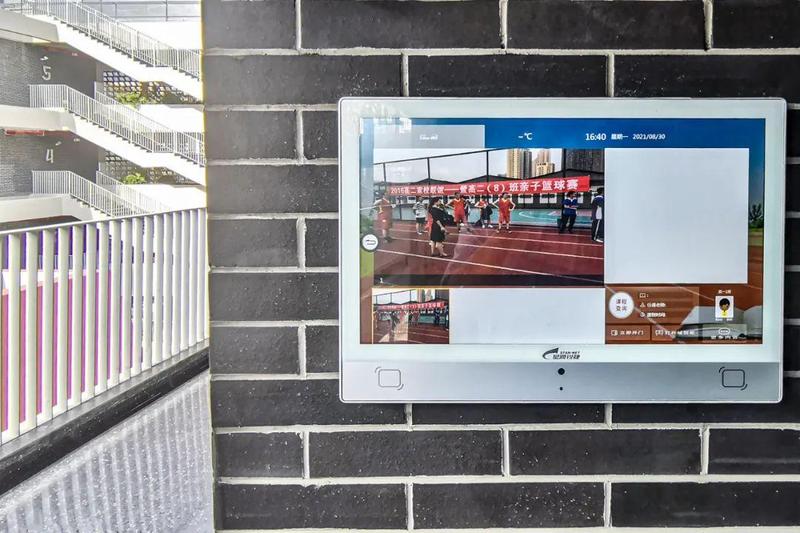 教室的布置也是十分体贴。为了方便走班,每个教室外,都有一排储物柜,并配置了电子班牌,进门,签到和开储物柜,刷一刷脸就可!