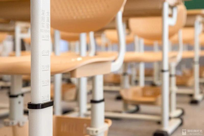 进入教室,原木色的桌椅十分清新,而且都能自己根据需求调节高度。