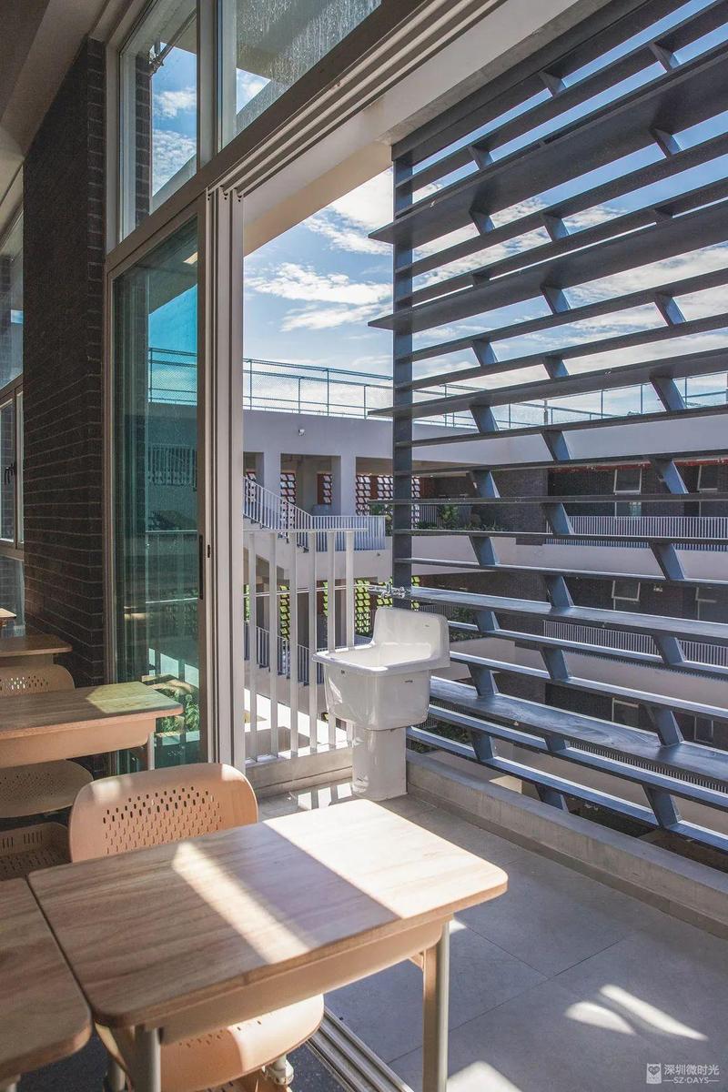 更赞的是,课室带有小阳台,阳台上还安装了洗手盆,课间想洗洗手洗洗脸,或者打扫教室,不用专门跑一趟厕所,省时省力。