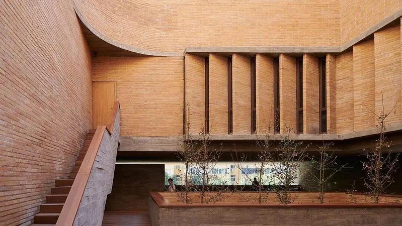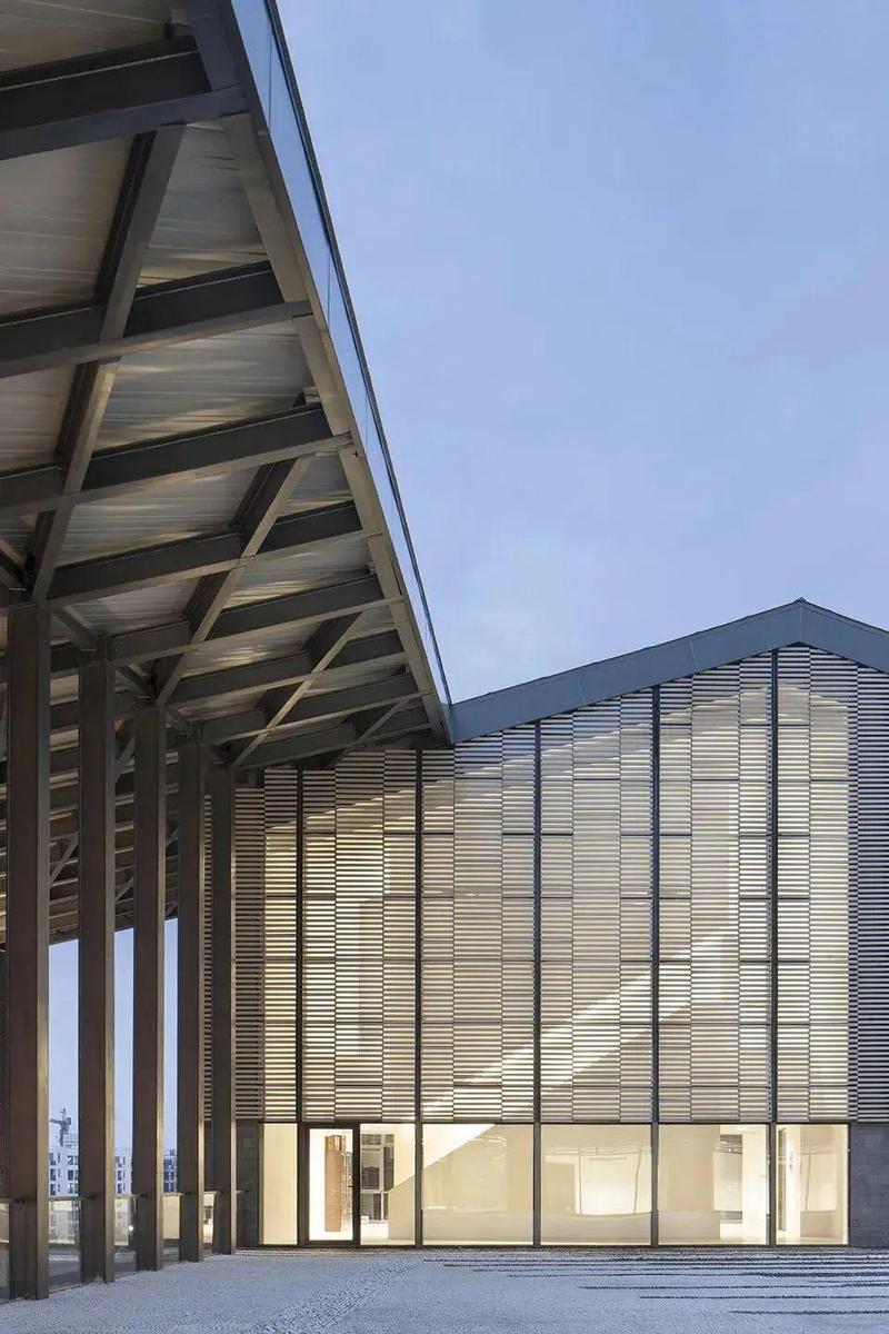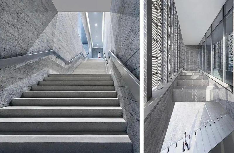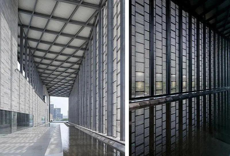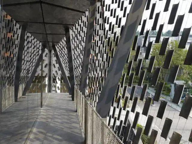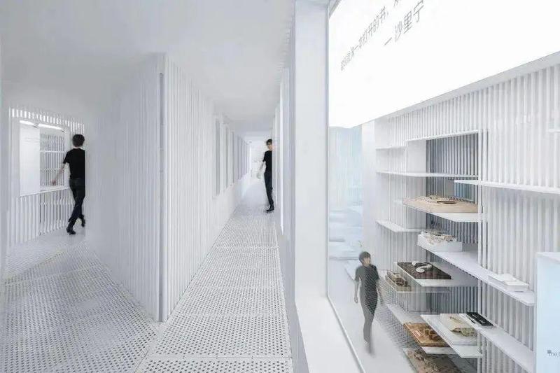 矢量建筑师设计的长江美术馆浅砖卷包括一个凸起的公共广场和太原市的人行天桥。