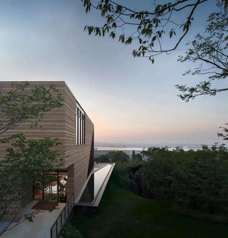 屋顶水景平静如镜,仿佛融入海天一色中。凝眸处,山和海把宽广的胸襟敞开,让人一步步参悟,直至指向通往心灵的辽阔。