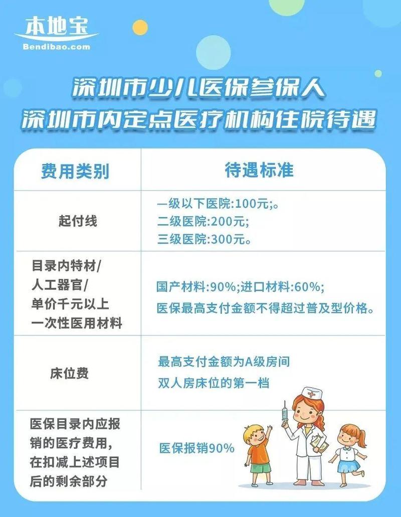 深圳市少儿医保的待遇按《深圳市社会医疗保险办法》的二档医疗保险的规定执行,既能享受到住院大病的保障,又能享受到小病小痛的医保待遇。