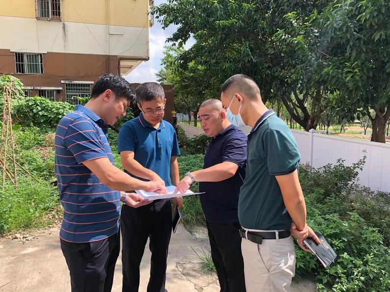 ▲坪地街道党工委副书记、办事处主任隋继超(左二)在征拆现场调研。