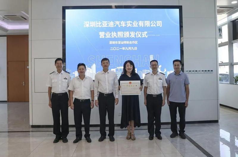 深圳比亚迪汽车实业有限公司落户深汕!营业执照今日颁出
