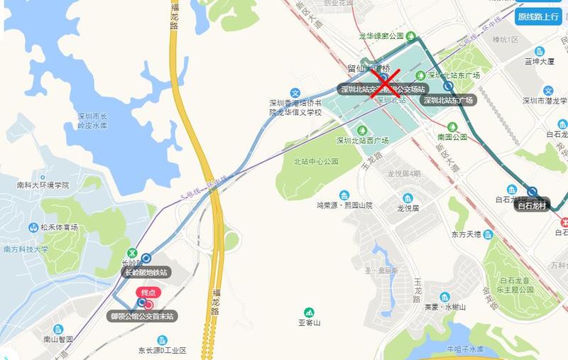 一端总站由深圳北站交通枢纽公交场站调整为御领公馆公交首末站。