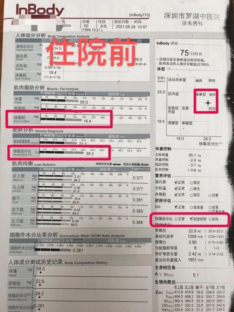 住院前后身体成分分析
