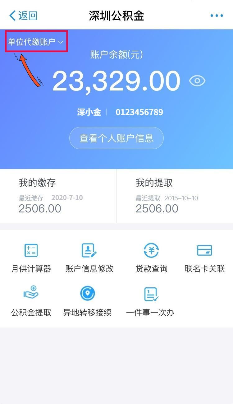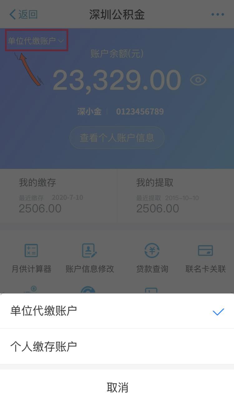 若您既有单位代缴账户又有个人缴存账户,可点击左上角进行账户类型切换。