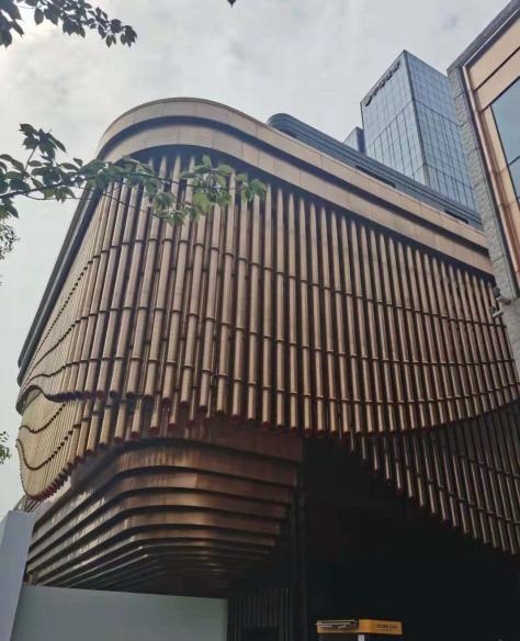据参观调研,该建筑设计从中国传统戏剧舞台汲取灵感,采用中国戏台、帘幕的概念,黄铜构件节点结合竹节元素造型,营造出一个被移动幕帘所包围的多层艺术空间,展现设计鬼才的创造性表达。