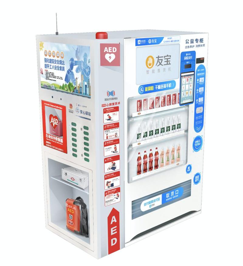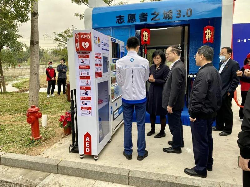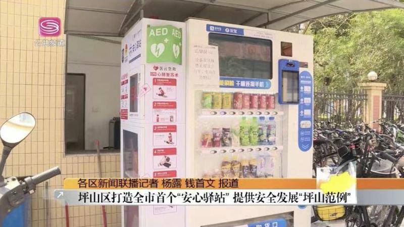 为推动社会应急管理能力提升,为市民提供应急救护安全保障,响应《深圳经济特区医疗急救条例》“鼓励社会力量在人员密集场所配置AED等急救设备”的号召,积极探索社会应急基础设施建设模式,深圳市城市公共安全技术研究院、深圳市公共安全义工联合会在深圳市应急管理局、团市委指导下,联动社会资源参与社会应急基础设施体系构建,创新开展“安心驿站”公益项目,首期的安心驿站为“AED+应急物资包+消费扶贫+安全宣教+智能售货机一体机”模式,集“应急救护、消费扶贫、创文宣传、便民服务”等功能为一体。