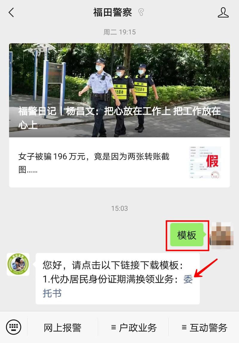 申请人(委托人)签名确认的委托书统一模板下载,需关注“福田警察”微信公众号,在对话框内回复“模版”就可以获取下载链接,下载后打印填写即可。