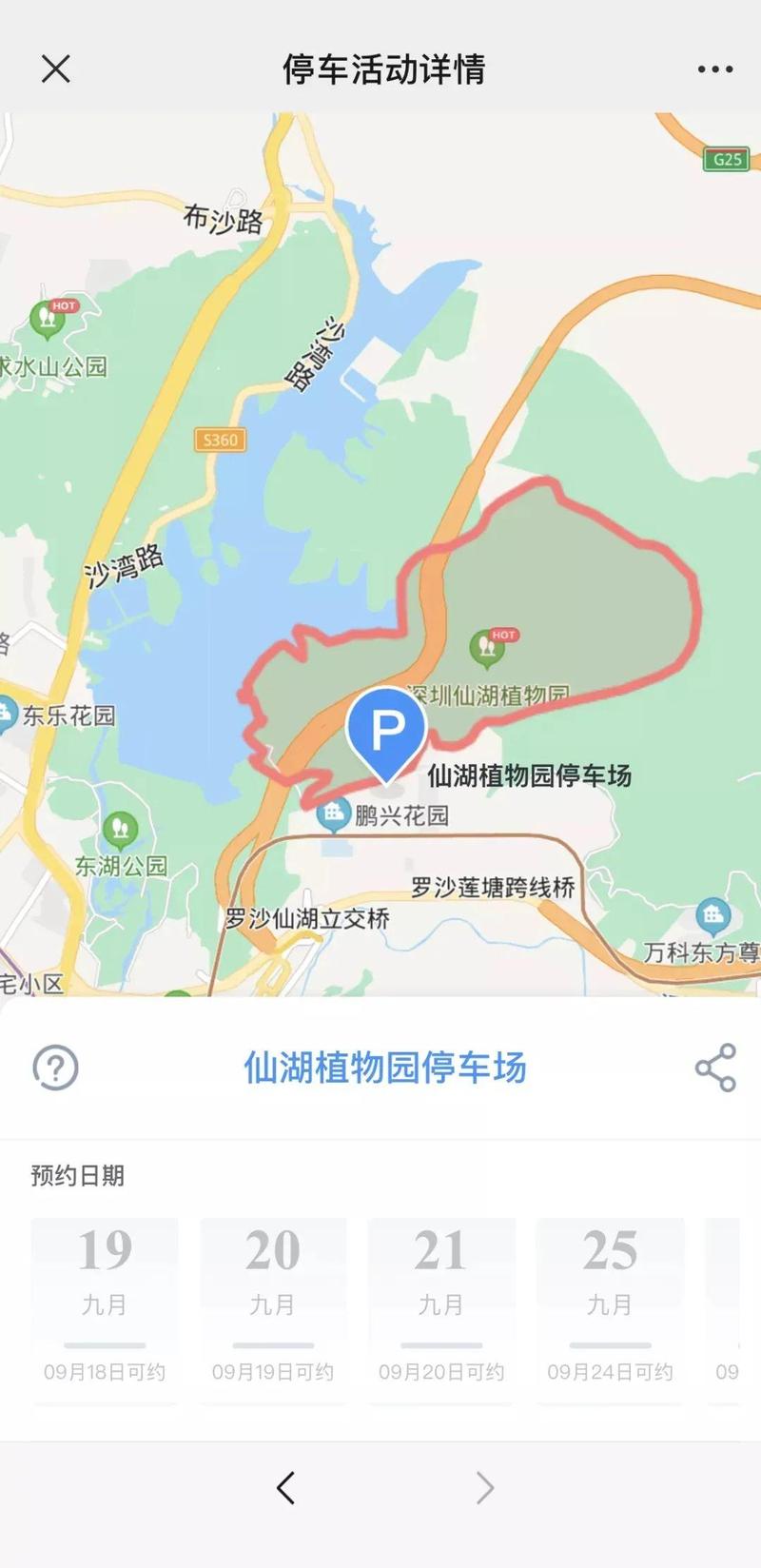 中秋期间(9月19日至9月21日),仙湖植物园内均不提供车位,公众需提前预约园外立体停车场。