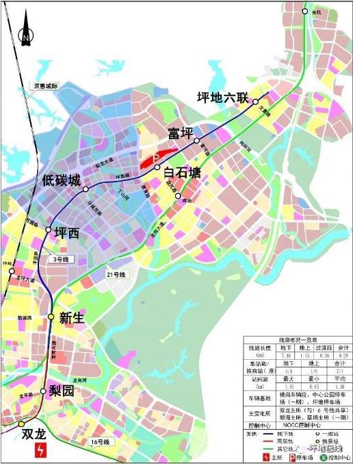 轨道交通3号线四期(东延段)线路全长约 9.28 km,包含 7 站 7 区间 1 场 1 线,除梨园站为高架站,其余为地下站。其中,换乘站 1 座(新生站),新建坪地停车场 1 座。站点:梨园、新生、坪西、低碳城、白石塘、富坪、坪地六联,其中在坪地就有5座车站。