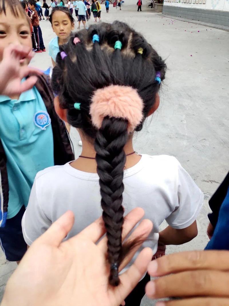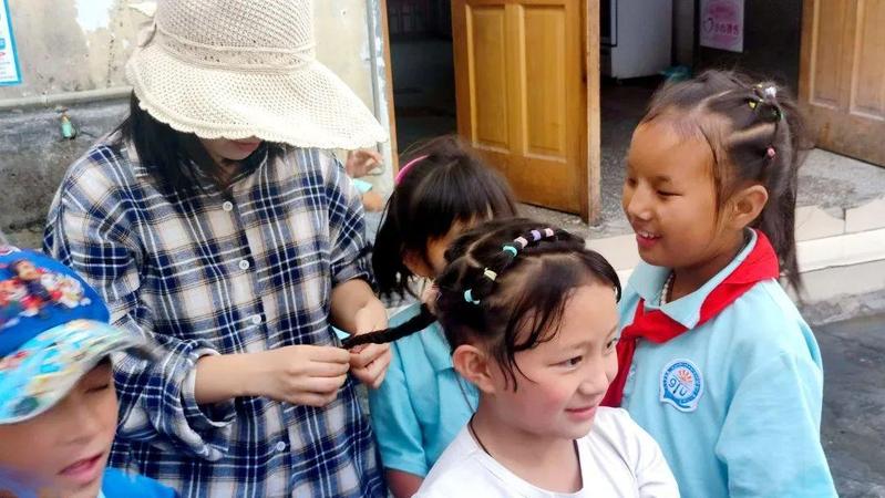 ▲给孩子们编辫子