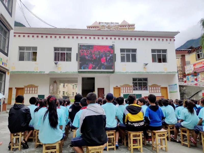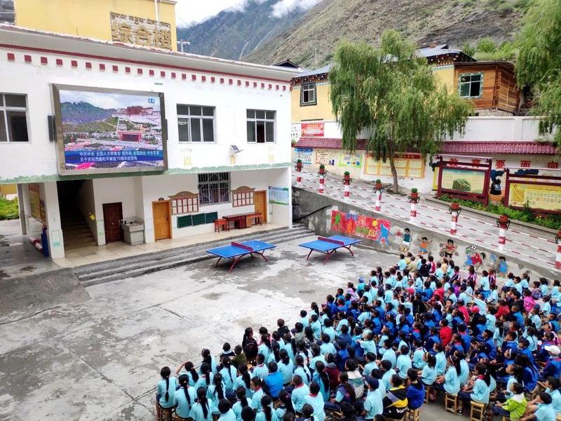 在西藏和平解放七十周年的纪念日当天,全体师生们坐在校园里通过大屏幕观看布达拉宫的仪式直播。来到这边后,这里的人和事给我很深的触动。