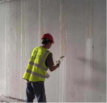 补平板缝后进行挂网处理,使用专用抗裂砂浆进行板缝处理。以保证后期墙体装饰面出现裂缝,影响学校室内观感以及学校形象。