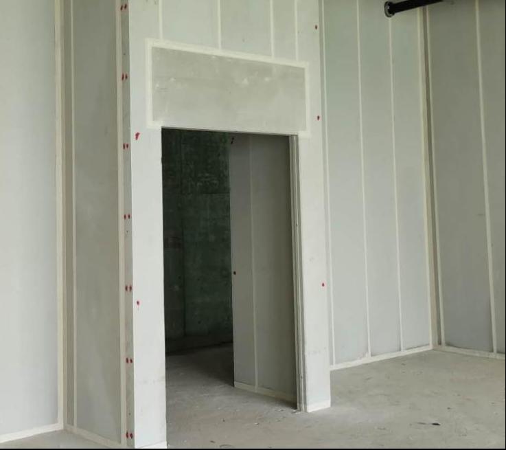 根据审批过的深化设计图进行放线定位。用水平仪测量并弹基线,基线与梁顶、楼板底的基线垂直,保证安装墙板的平整度、垂直度,并标柱好门洞的位置。
