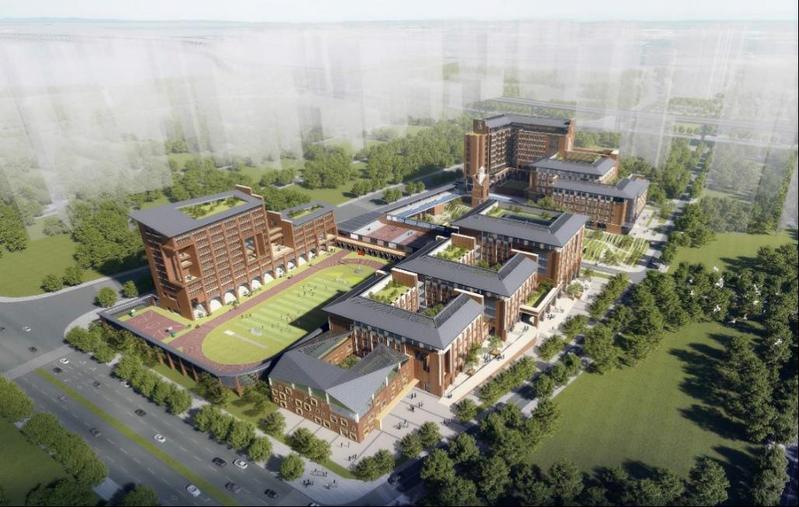 项目西侧为临海大道,南侧为前湾四路,东侧为规划市政道路,其下方有规划地铁线,场地北侧为项目国际学校。总用地面积约28816㎡,建筑面积77135㎡,其中地上建筑面积52252.03㎡,地下建筑面积25063.95㎡,包含两层地下室及6栋单体建筑,其中地上教学区分高中部(7层),初中部(5层),小学部(4层)以及幼儿园(4层),宿舍A栋(10层)、B栋(5层),建筑高度最高49.7m,结构形式为框架-剪力墙结构,地下室局部钢结构。