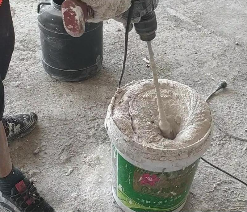 搅拌粘接剂,为板材安装与拼缝处理做准备。