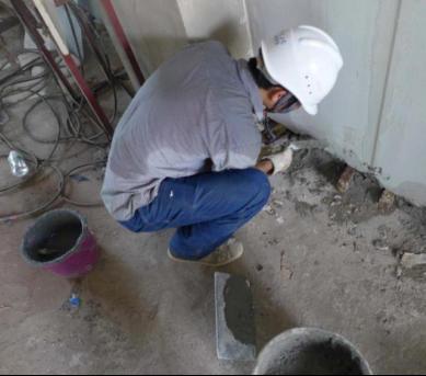 填塞前,用少许水润湿底部;之后用填缝枪打满,再使用灰刀收平。板材安装完成后,应当天使用专用砂浆填充底部缝隙;待材料初凝后将木楔子取出,并补捻缺口。