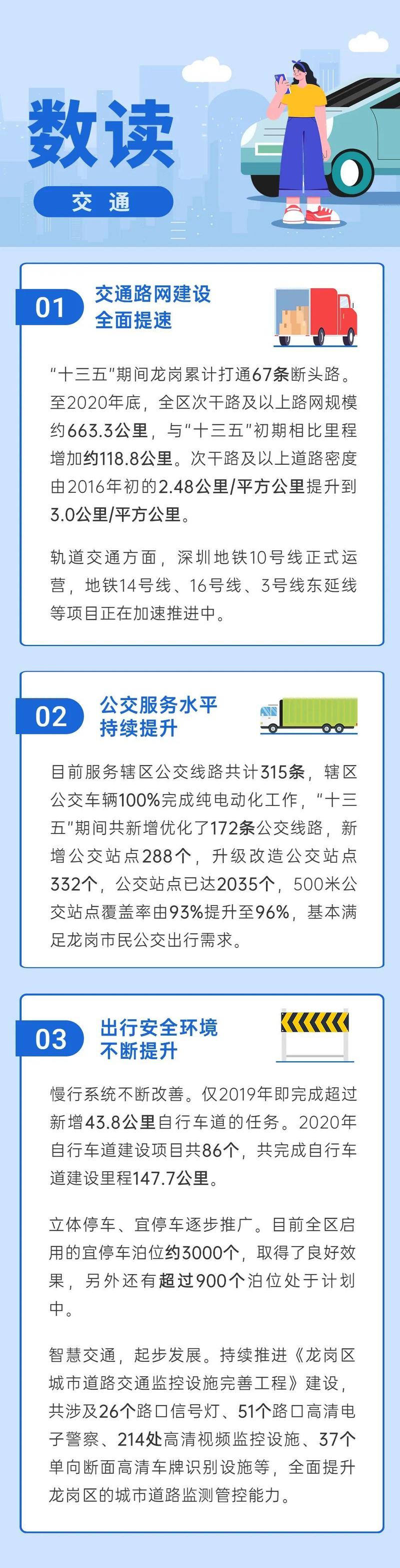 “十三五”以来,在“东进战略”“强区放权”“深圳建设中国特色社会主义先行示范区”等一系列历史机遇下,龙岗区交通基础设施建设加速破局、综合交通体系日趋完善,整体交通运行状况和环境也有较大改善。