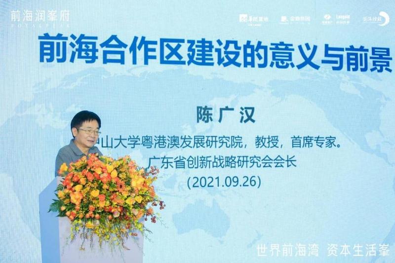 中山大学粤港澳研究院首席专家、教授、博士导师,广东省创新战略研究会会长陈广汉,现场分享《前海合作区建设的意义与前景》课题,让现场观众对8倍扩容的“大前海”的未来发展,以及各片区功能与产业发展的分工与协同有了更深入了解。
