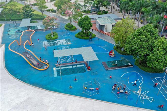 在“探索乐园”区域,有跷跷板、攀岩、滑滑梯等儿童专属玩乐项目。而整个公园内最显眼的当属一只由柔韧轻软的缆绳编织而成的巨型大章鱼,不仅外形可爱,更是该公园的主地标。