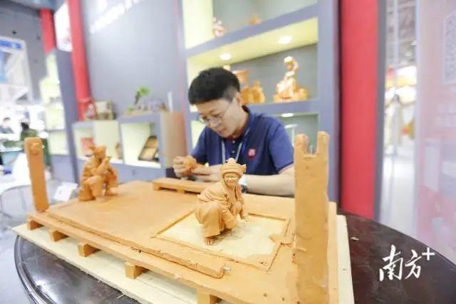 非遗馆内传统泥人传承人现场制作工艺品。