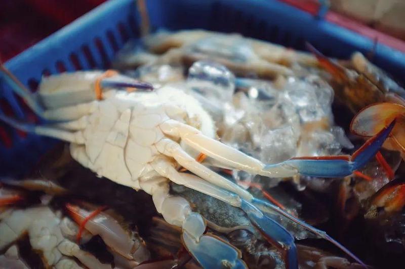 撕开蟹肉,色清亮,又有瘦肉的劲道,入口如食冰沙。红艳艳的蟹膏更是呈半凝固状,大快朵颐的人们此刻会稍稍停顿,撅嘴一吸,滑溜冰凉掠过喉咙,顷刻间如大海辽阔,在腹中荡气回肠。
