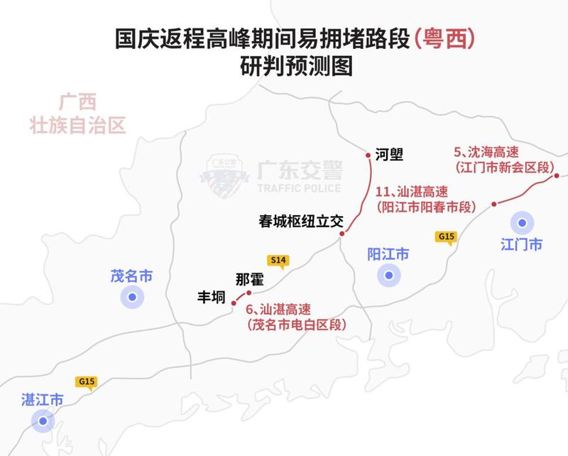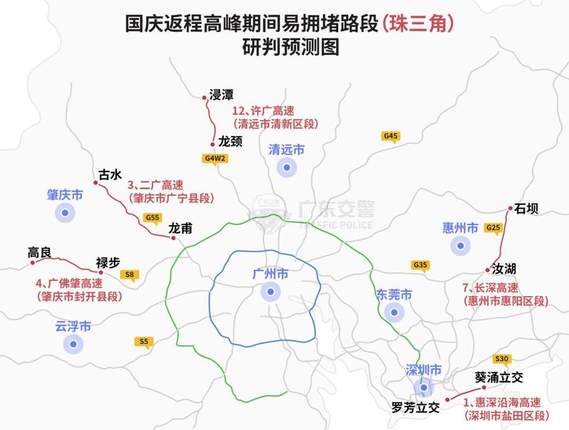 预计假期(10月6-7日)中心城市进城方向、省际省内主干道将出现返程高峰。