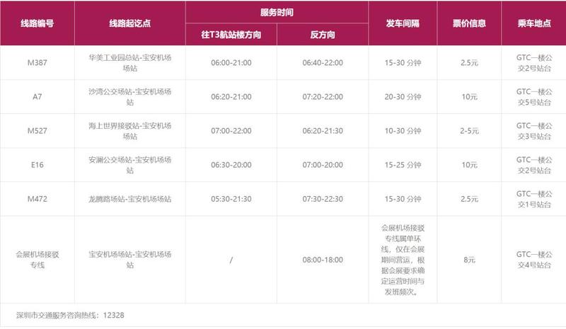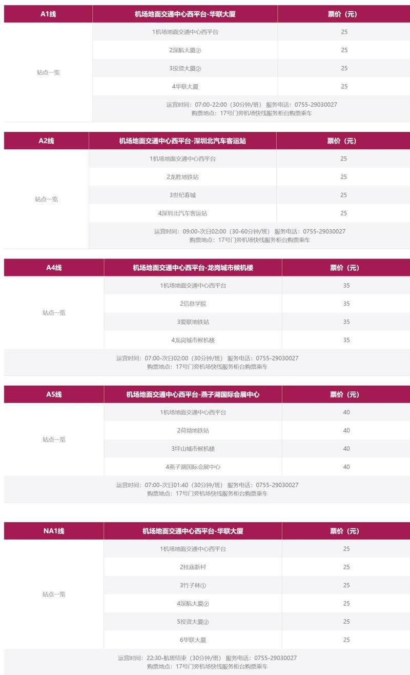 机场快线共5条线路,可通达罗湖、福田、坪山、龙岗、龙华等区域,乘车地点为机场地面交通中心西侧平台。