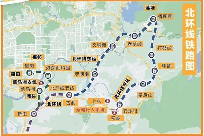 其四,将“北环线”由古洞站向东延伸,接驳罗湖、文锦渡以及香园围一带,再南下经过打鼓岭、皇后山到粉岭。