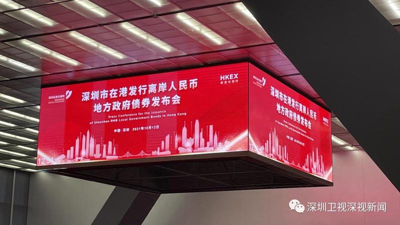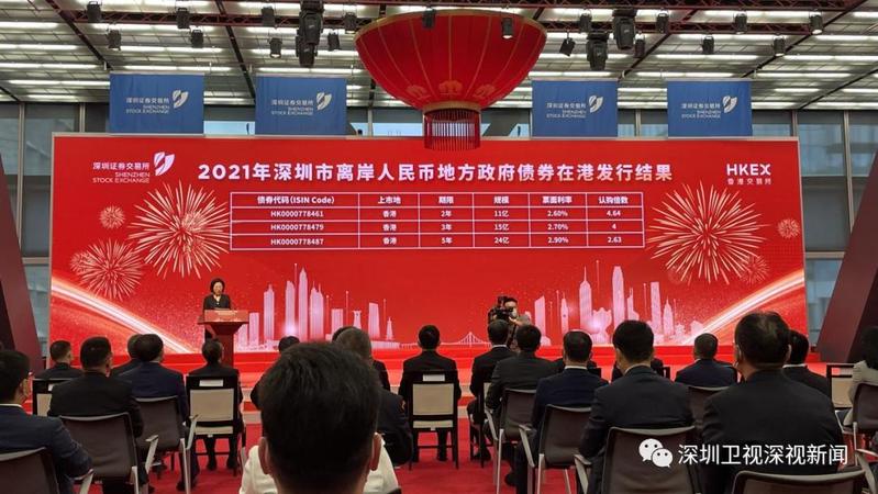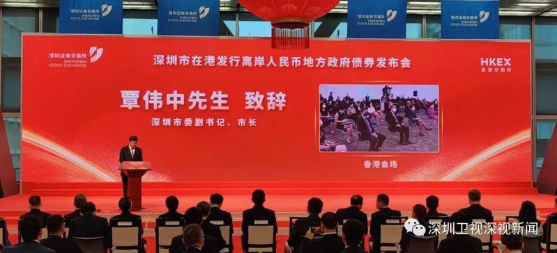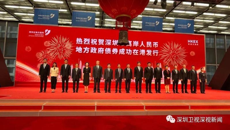10月12日,深圳市在港发行离岸人民币地方政府债券发布会顺利举行,此次发布会在深圳市、香港特别行政区双会场连线举办。香港特别行政区行政长官林郑月娥、财政部副部长许宏才、中国人民银行副行长潘功胜、国务院港澳办副主任黄柳权通过视频连线方式出席,深圳市委书记王伟中、市长覃伟中等在深交所会场出席发布会。