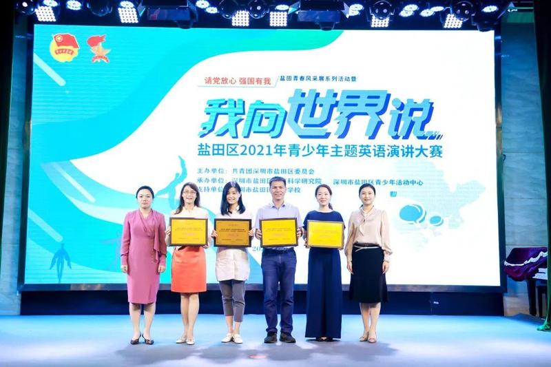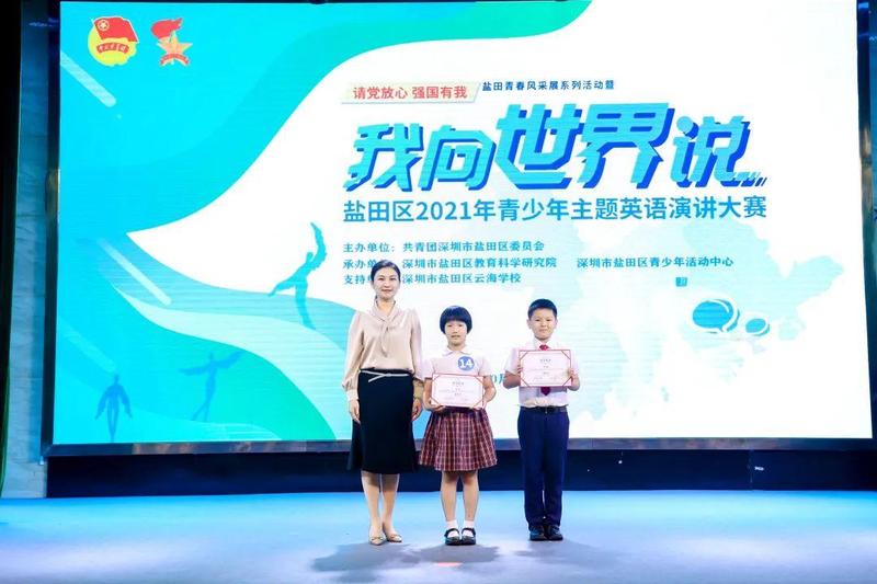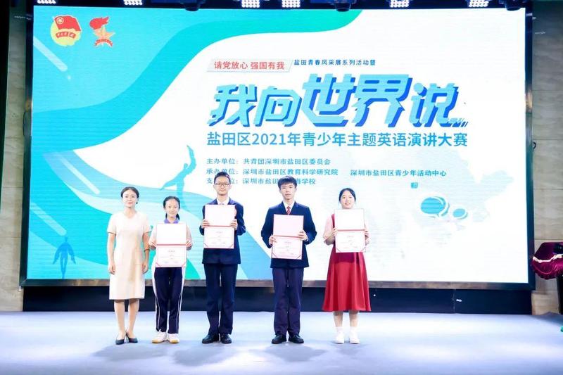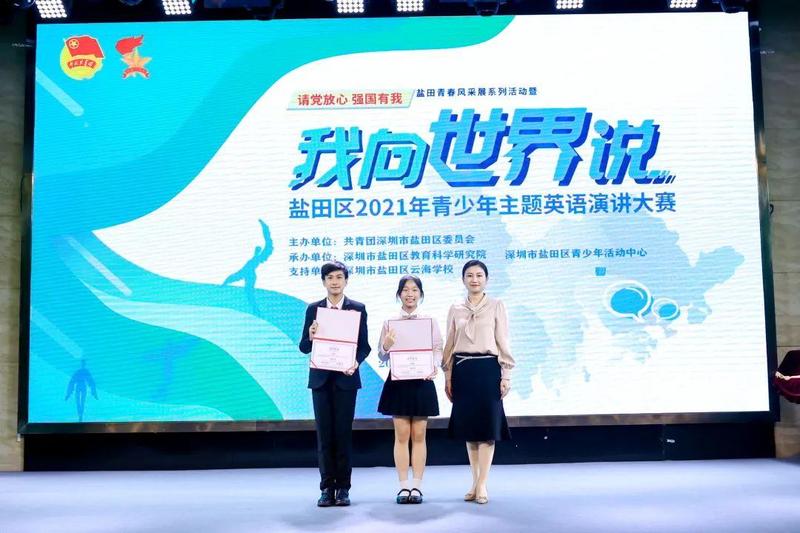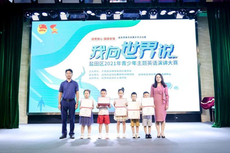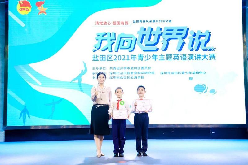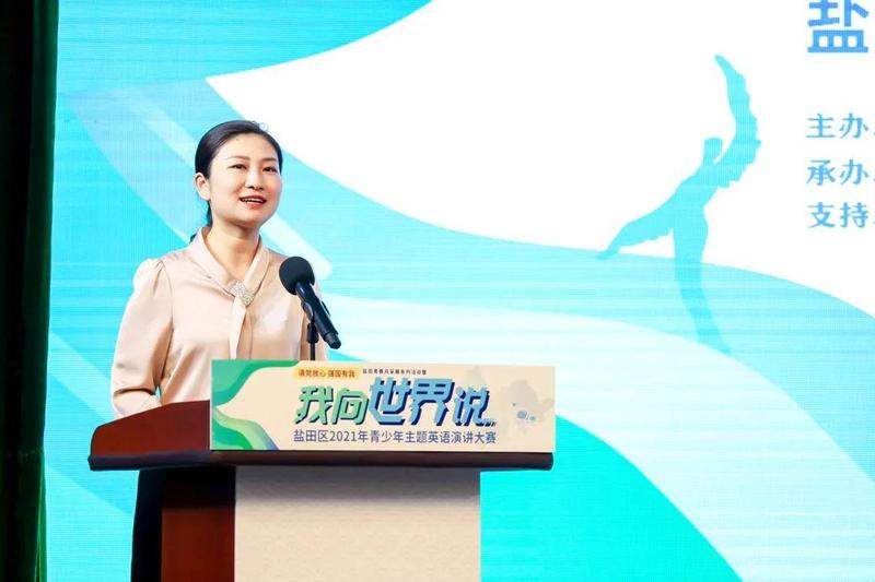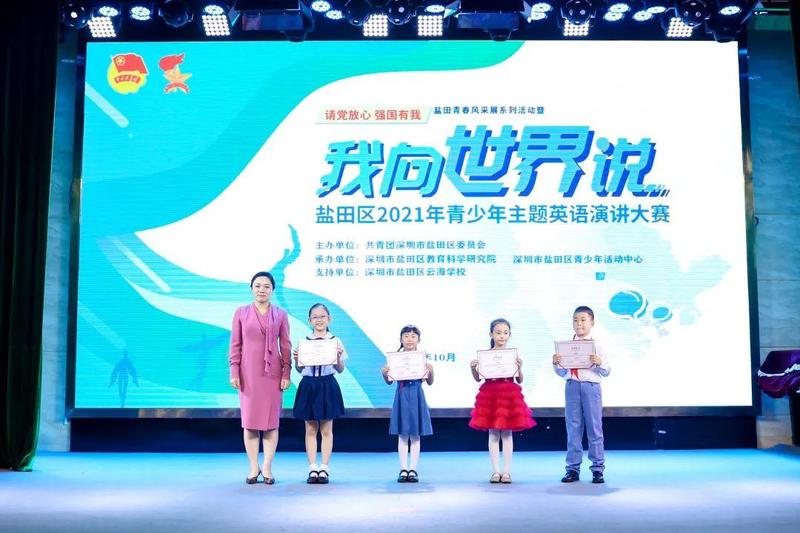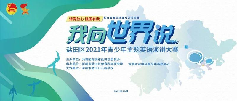 10月10日,“请党放心 强国有我”盐田青春风采展系列活动暨盐田区2021年青少年“我向世界说”主题英语演讲大赛决赛在深圳市盐田区云海学校成功举办。共青团盐田区委员会书记傅瑜、副书记林芳,盐田区教育局党组成员、副局长叶菲,盐田区教育科学研究院院长李天才、副院长陈尚宝出席了本次活动。
