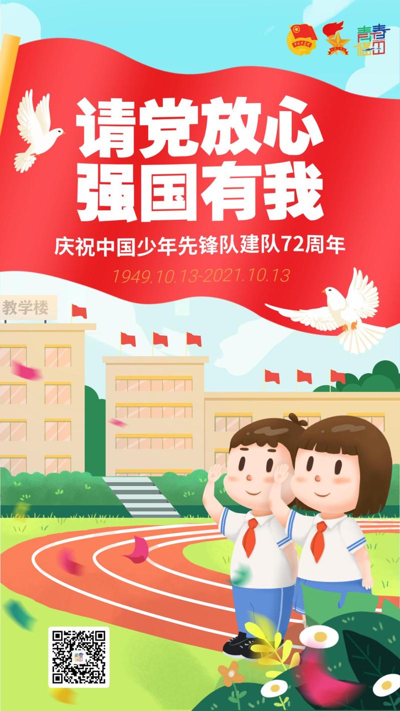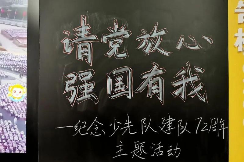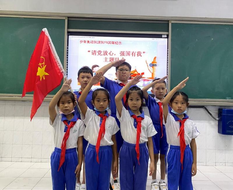 中国少年先锋队走过了72年的光辉历程,少先队的光辉历史昭示着少先队员们的成长,是国家和民族永久兴旺发达的期望所在!相信队员们一定能以此为动力,以新时代少年的标准严格要求自己,朝着“四好少年”的目标而努力奋斗,为红领巾增添新的光彩,请党放心,强国有我!
