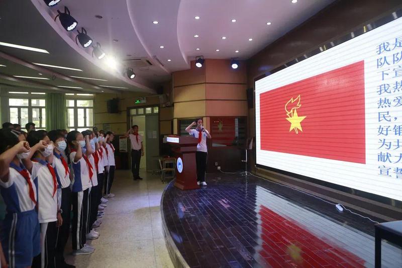 同学们唱队歌、敬队礼,抒发少先队员热爱党、热爱祖国、热爱人民的情怀,展现少先队员朝气蓬勃的精神风貌;学党史、展未来,队员们谨记习爷爷的嘱托,增强做中国人的志气、骨气、底气,不负时代,不负韶华,不负党和人民的殷切期望;握拳头、温誓词,少先队员定将修品行、练本领,立志做共产主义事业的接班人。