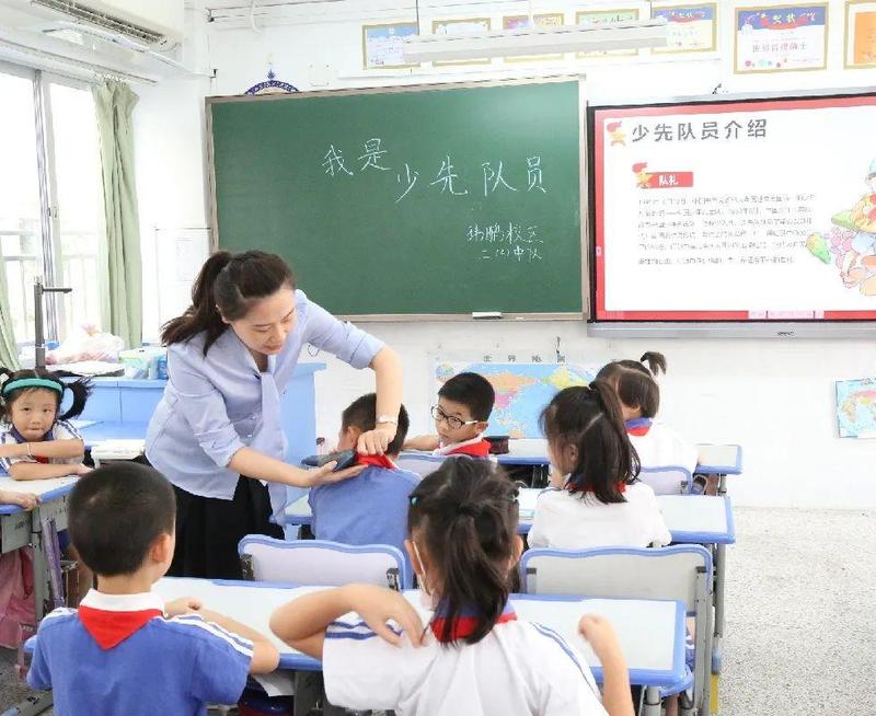开展二年级第二批少先队入队仪式、五年级换巾仪式。二年级共6个中队进行第二批少先队入队前教育,由少先队大队干部到各中队进行教育,指导新队员掌握系红领巾等技能。