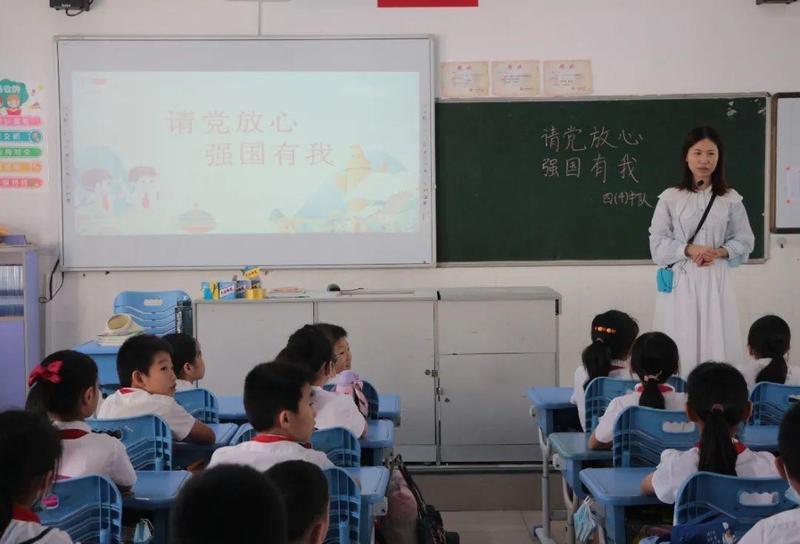 领巾飘飘心向党,争做新时代好队员。各中队积极响应,在中队辅导员的带领下,自主召开主题队会,带领学生们重温少先队员的知识,进一步增强队员们的组织意识,让少先队员深刻认识到新中国成立以来,特别是改革开放以来,社会主义现代化建设的巨大成就,就是在党的领导下取得的。中队辅导员们引导广大少先队员牢记“立志向、修品行、有梦想、爱学习、爱劳动、爱祖国”。