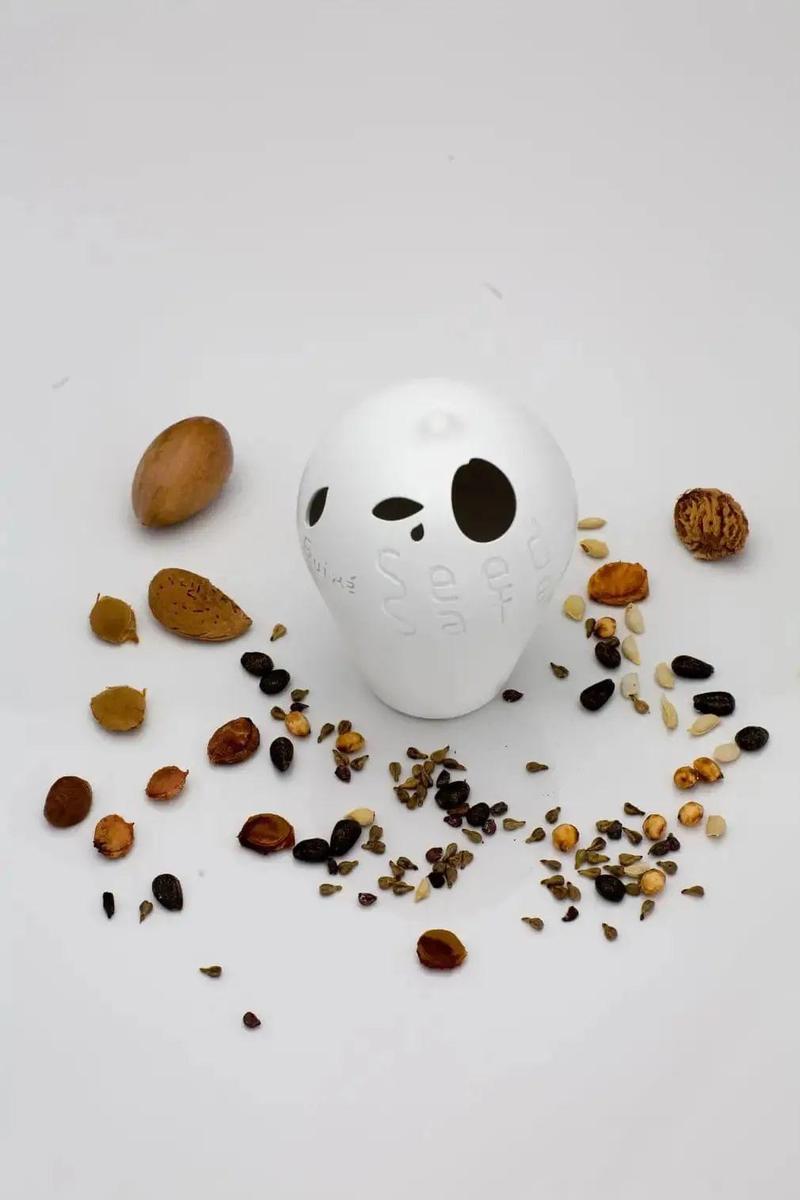 我们平时吃完可口的水果,果核便成为厨余垃圾被丢弃,而数以万计果蔬品种正濒临灭绝。马尔蒂在设计存钱罐时萌生灵感,在他看来,果核本身承载着该物种的大量信息,果蔬种子才是这个时代的可贵财富。