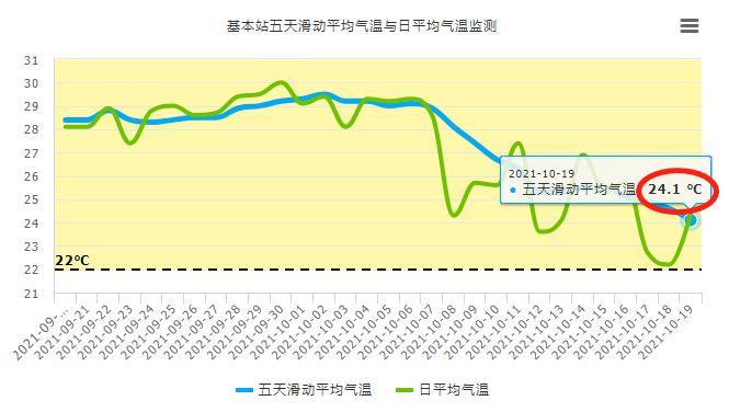 预计到24日白天冷空气才逐渐减弱,五天滑动平均气温有望达到入秋标准(≤22℃),大家拭目以待吧。