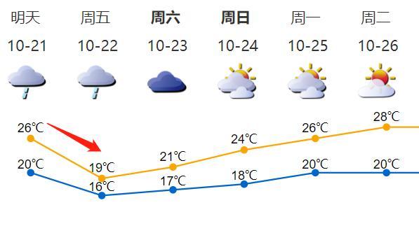 21日夜间冷空气抵达,北风加大,气温明显下降,22-23日天色阴沉,间中有零星小雨,最低气温16-17℃,体感阴凉;