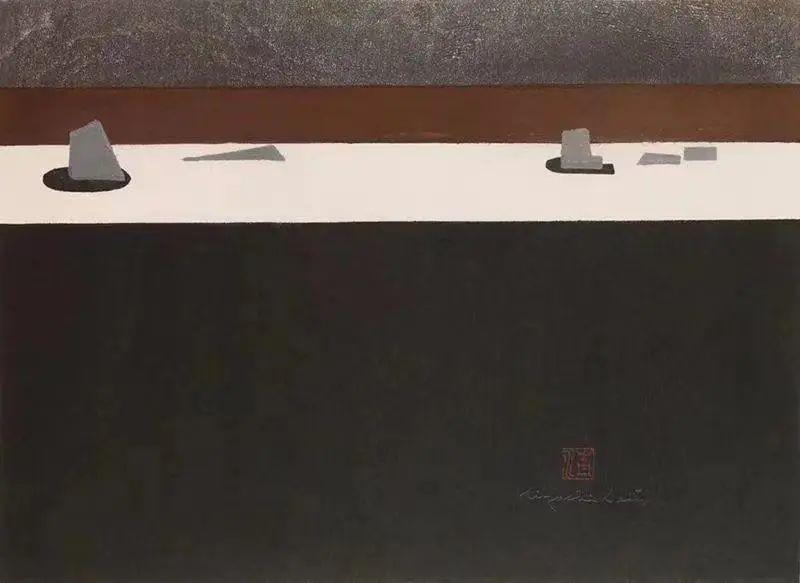 20世纪40年代到50年代,斋藤清专注于描绘陶俑、佛像、石庭和古建筑的造型。《石庭》正是犹如将这种“极端单纯化”实现了的绘画作品。