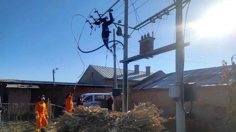 哈尔滨一电工在高压线作业时
